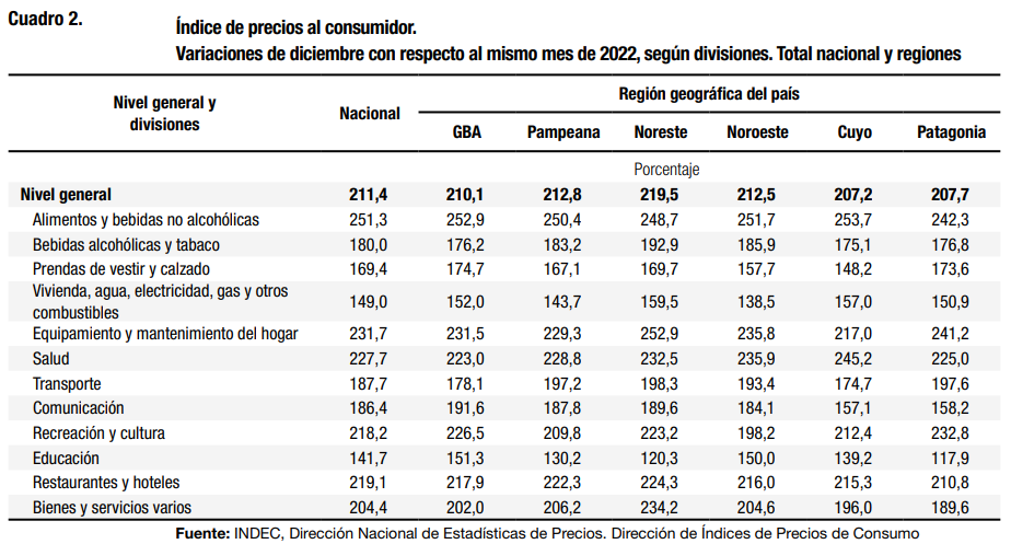 El día jueves a las 16 hs. se dio a conocer vía Instituto Nacional de Estadísticas y Censos (INDEC) el dato de inflación mensual del mes de diciembre que trepó a 25,5%, cuyo nivel interanual alcanzó 211,4%, el nivel más alto desde la hiperinflación de Raúl Alfonsín en 1990.