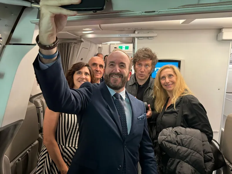 A bordo del avión, Milei fue recibido con aplausos y se tomó fotografías con algunos pasajeros. Viaja acompañado de su hermana y secretaria general, Karina, así como de la canciller Diana Mondino y el embajador designado en Israel, Shimon Wahnish. El presidente aterrizará en Tel Aviv bajo estrictas medidas de seguridad, en un contexto de tensión ante posibles represalias de grupos respaldados por Irán, como Hamas, Hezbollah o los Hutíes.